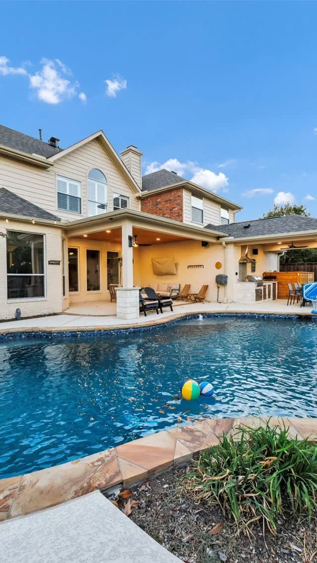 This custom outdoor living project in Lakewood, Dallas features a complete backyard transformation designed and built by TCP. Highlights include a custom patio cover attached to the garage, a fully equipped outdoor kitchen, and a remodeled pool and spa with updated tile, coping, and plaster. We also renovated the pool bathroom, installed new hardscaping, new walkways, and replaced the exterior doors on the home, garage, and bathroom. This Lakewood backyard now offers a seamless blend of comfort, style, and function—perfect for outdoor entertaining year-round.